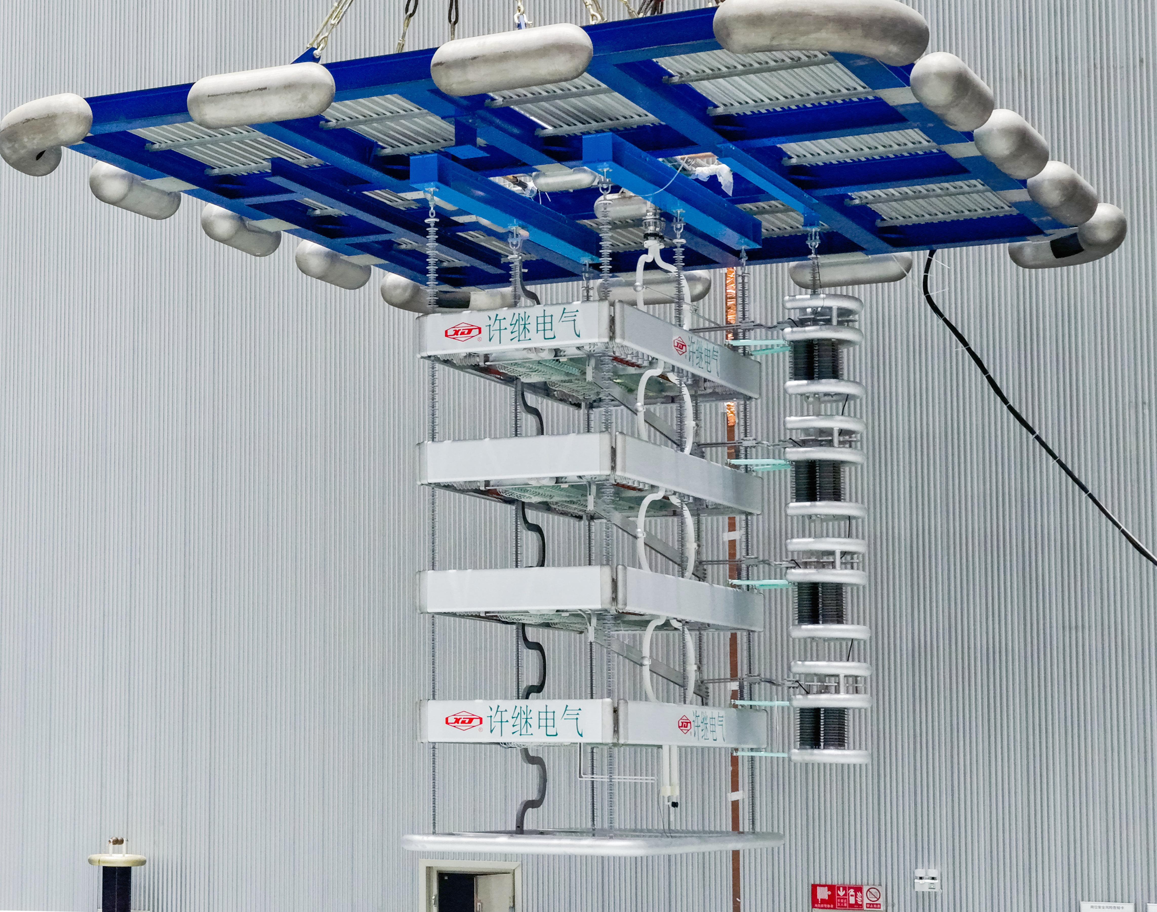 混合换相换流阀:该产品由许继电气所属柔性输电公司参与研制,攻克了混合换相换流阀5.5千安连续多次可靠关断技术、MOV精准限压和IGCT驱动双向大功率取能技术、自熔断MOV熔断器可靠熔断等关键技术。解决了多级高压大功率IGCT器件串联动态电压均衡、混合换相换流阀主动关断带来的暂态过电压防护等技术难题并通过了型式试验验证。该产品将首次应用于西北—华中联网工程灵宝换流站改造工程,可彻底解决换相失败问题,对于提升特大型交直流混联电网安全稳定运行水平,支撑大规模清洁能源开发外送和新型电力系统建设具有重要意义。