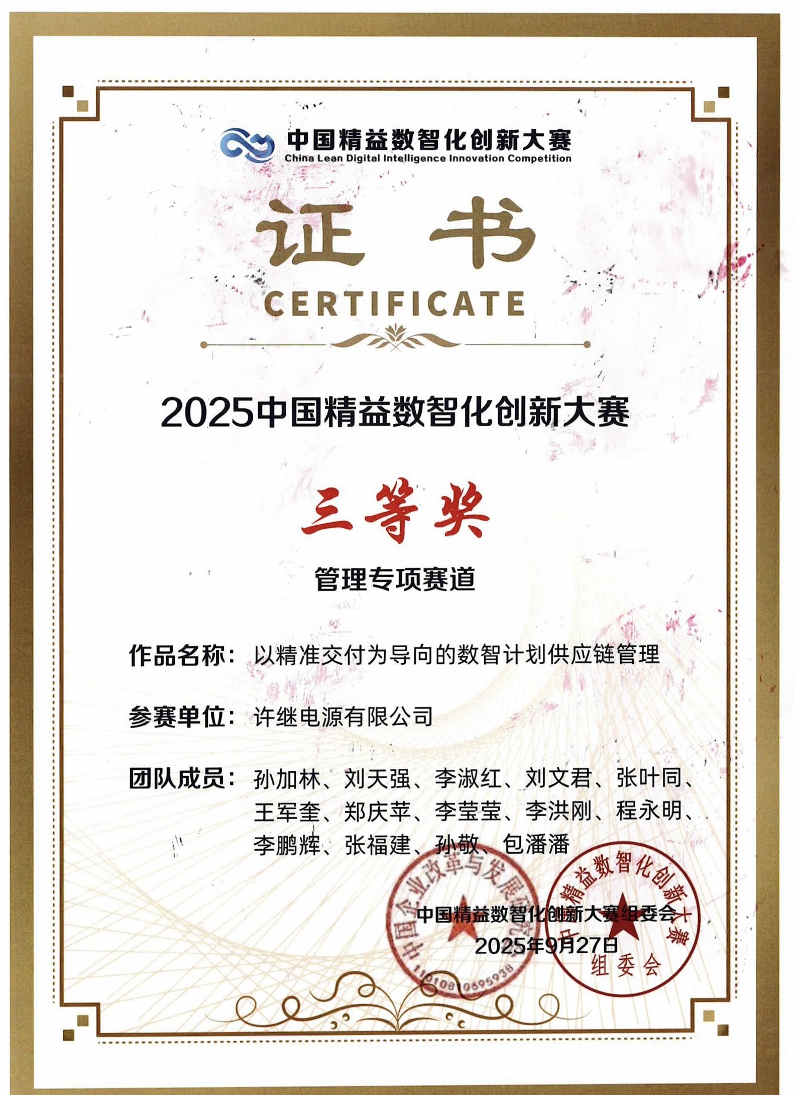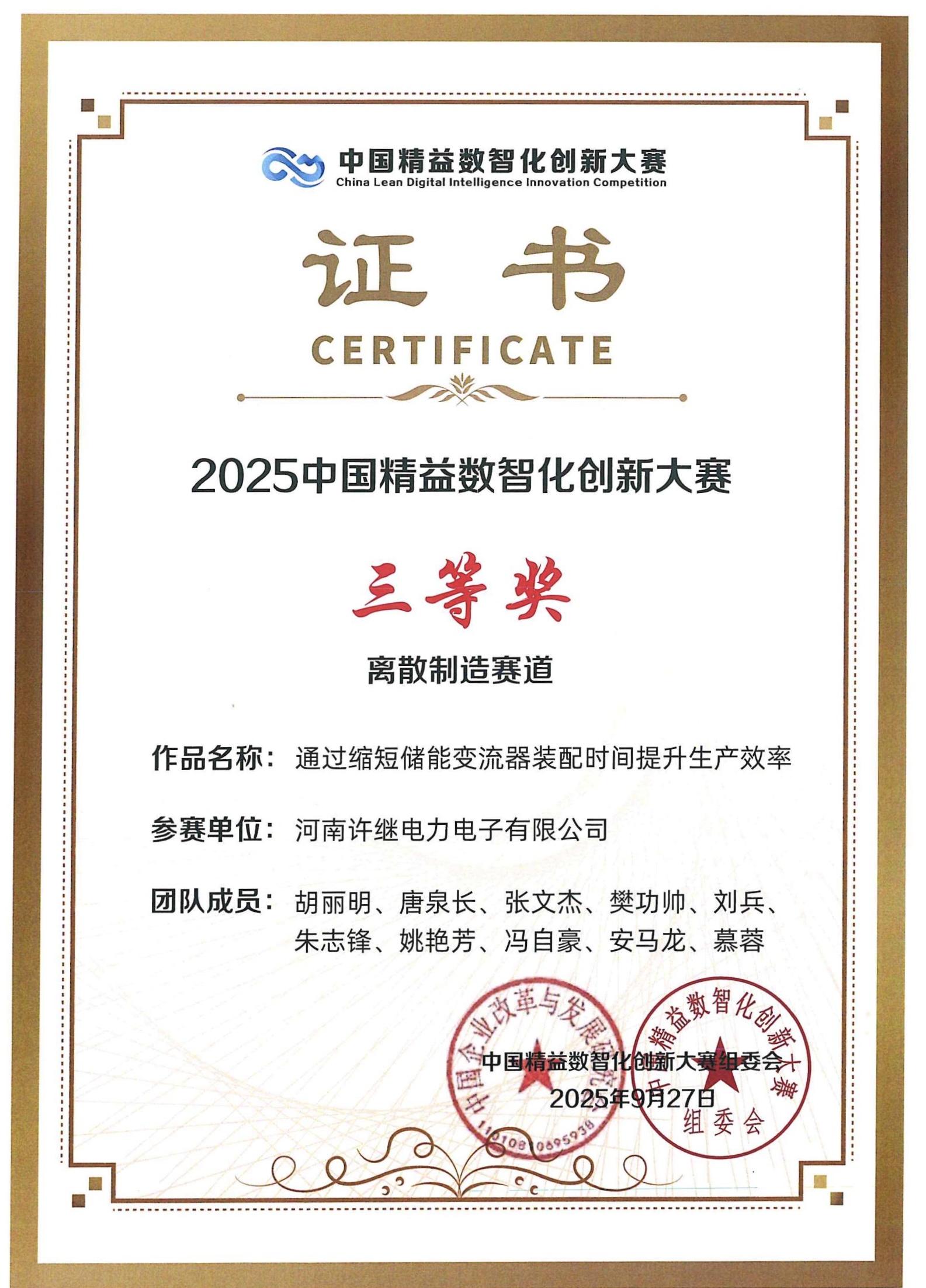 近日,在中国企业改革与发展委员会主办的2025中国精益数智化创新大赛中,许继电气所属许继电力电子公司、电源公司,从全国386家企业、1041个参赛项目的激烈角逐中双双突围,均斩获本次大赛三等奖。