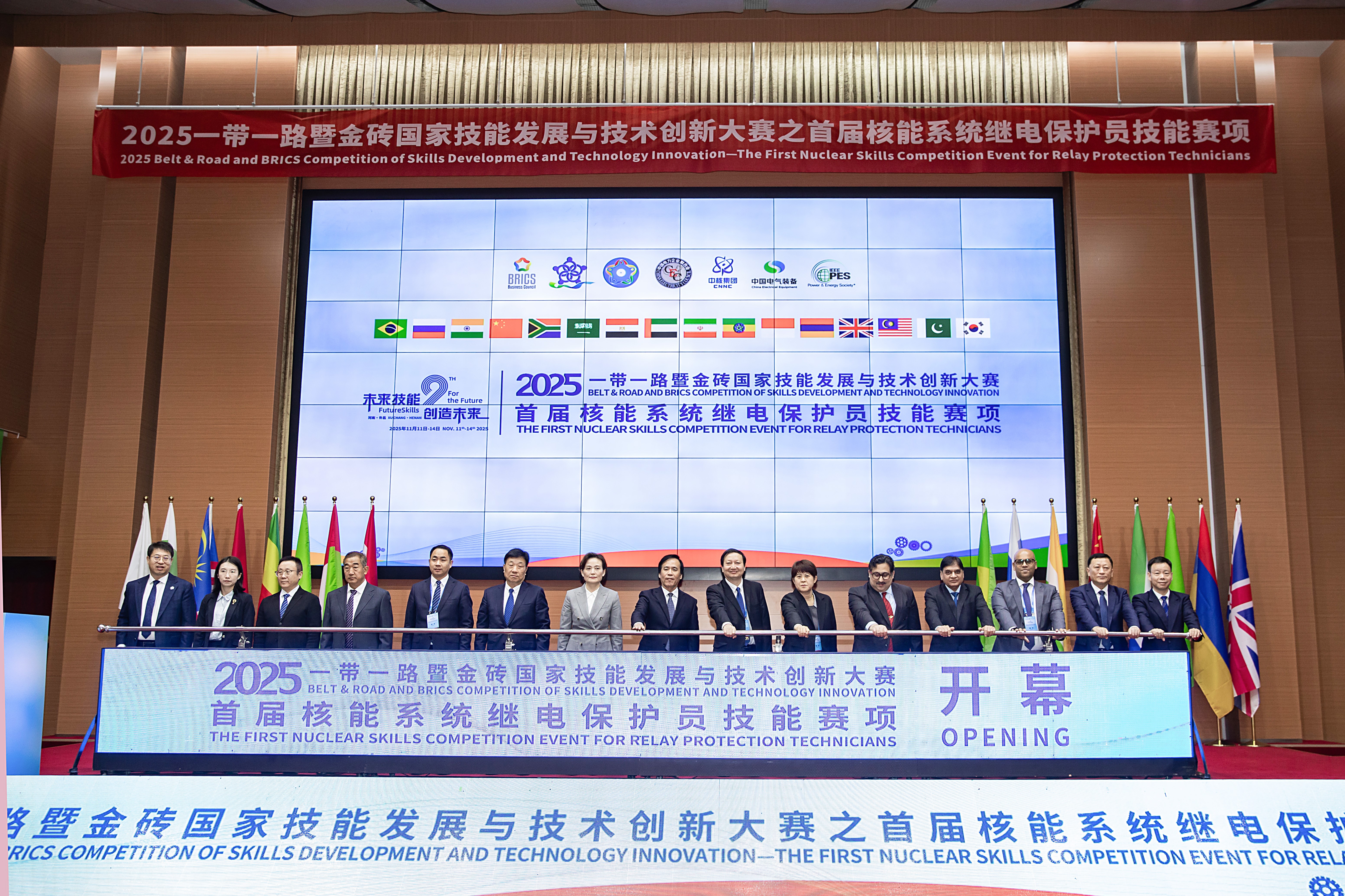 在共建“一带一路”和金砖国家合作框架下,技能发展与技术创新成为连接各国人才、促进共同繁荣的重要纽带。11月11日至14日,2025“一带一路”暨金砖国家技能发展与技术创新大赛——首届核能系统继电保护员技能赛项在河南许昌举行。来自中国、巴基斯坦、俄罗斯、亚美尼亚等9个国家的74名选手齐聚中原,共同参与这一核能系统继电保护领域的国际性技能赛事。本次大赛由中核集团、中国电气装备与多方单位联合主办,许继电气及相关单位具体承办。