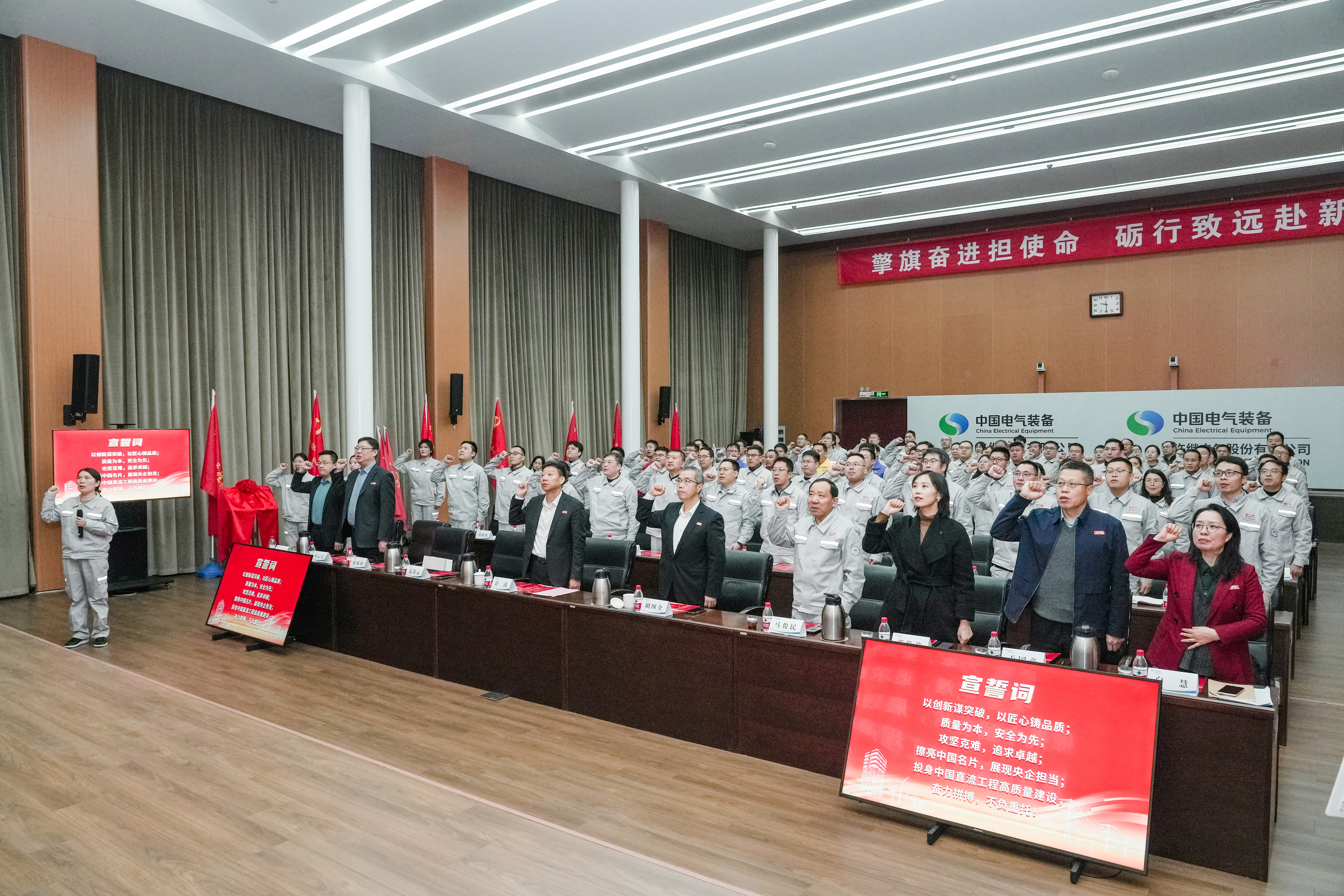 期间,许涛为河南许继柔性电力装备有限公司揭牌。与会人员共同宣誓,要将斗志化为奋进薪火,肩负使命,志在必胜。