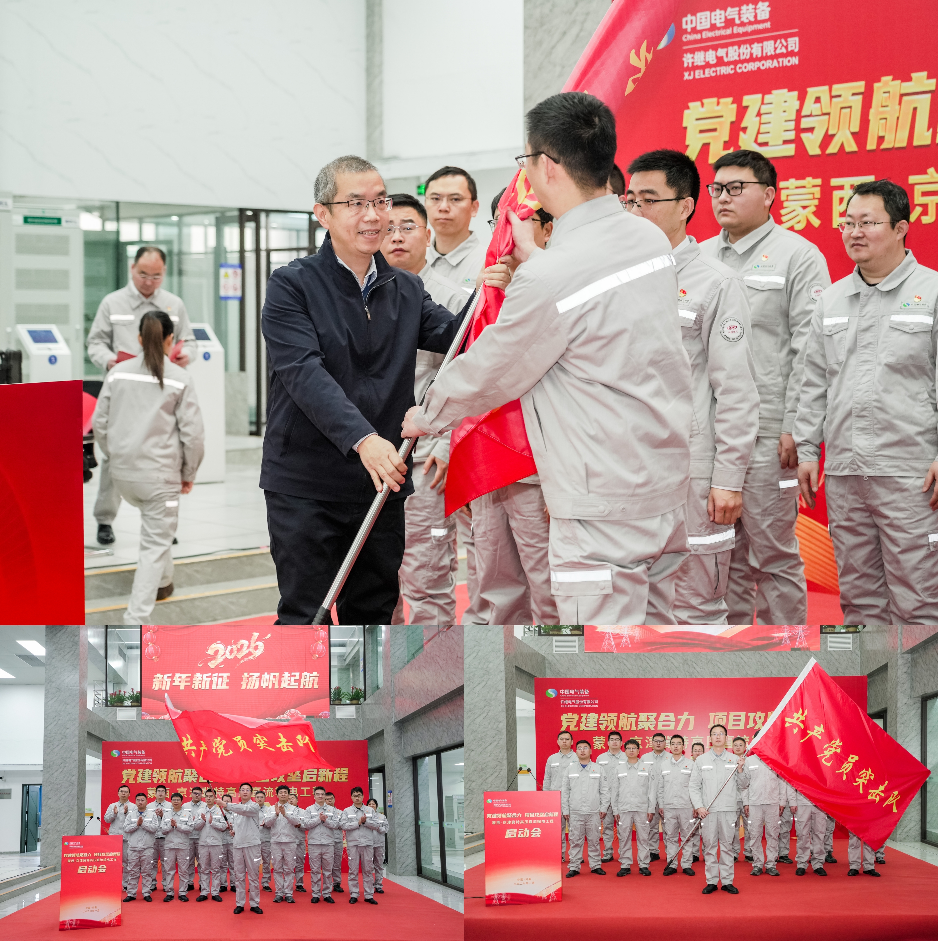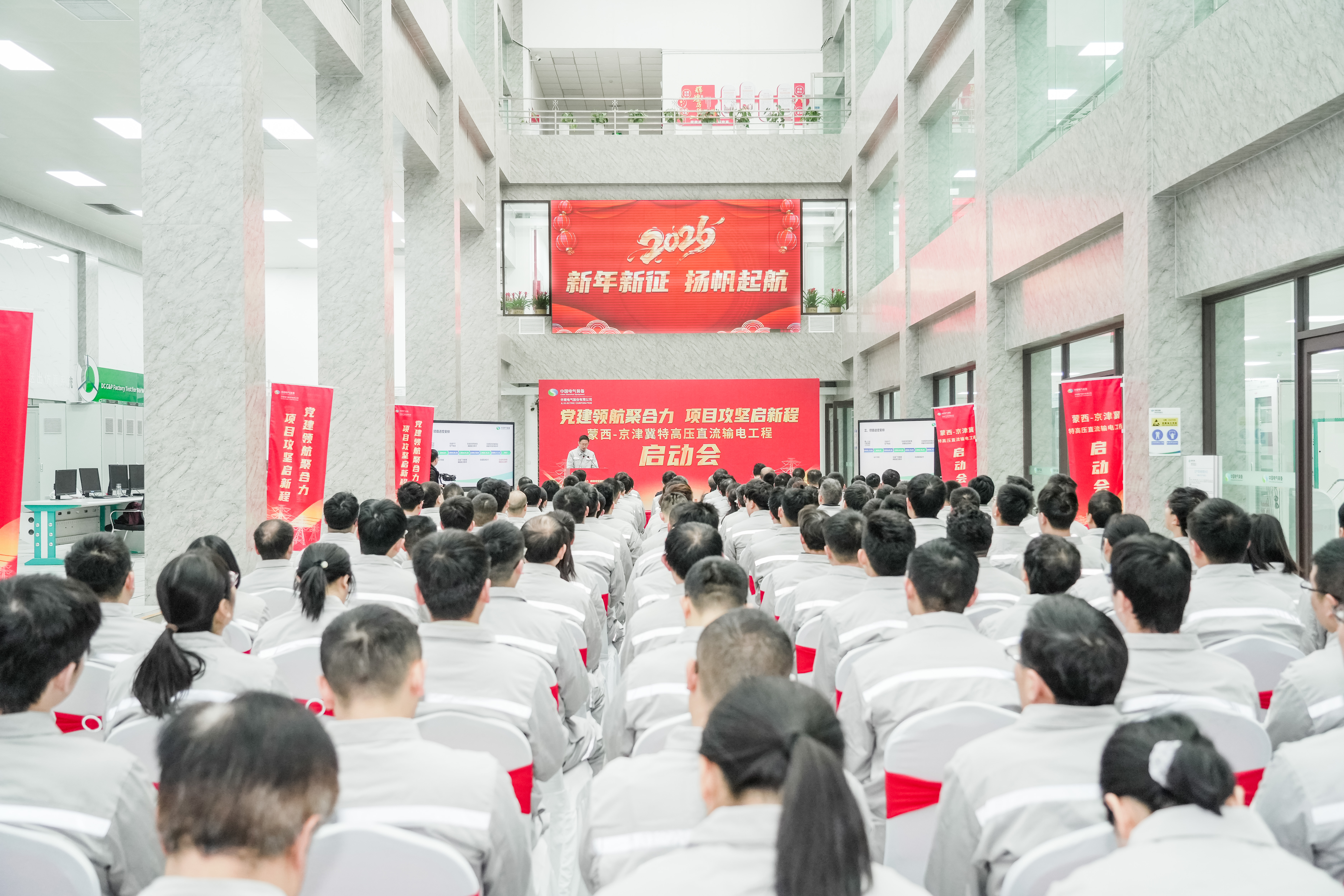 2026年1月5日,直流输电公司举行“党建领航聚合力 项目攻坚启新程”蒙西-京津冀特高压直流输电工程启动仪式。许继电气党委副书记、总经理许涛出席并作总结讲话,党委副书记、董事胡四全出席并致辞。
