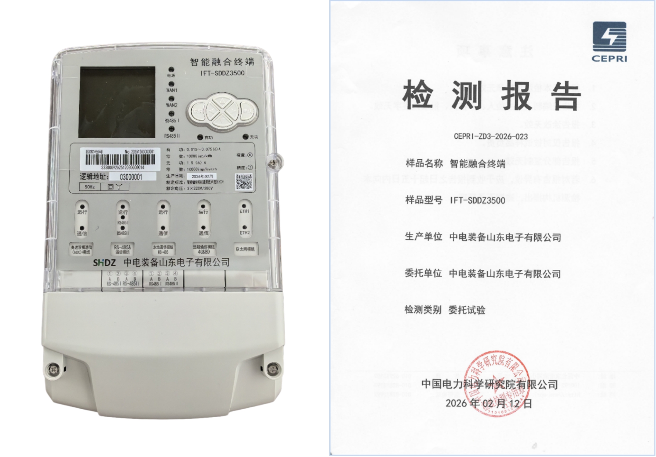 山东电子自主研制的智能融合终端新产品,业内首批通过中国电力科学研究院权威检测,并正式取得检测报告,标志着产品在技术性能、安全性与可靠性等方面达到了行业领先水平。