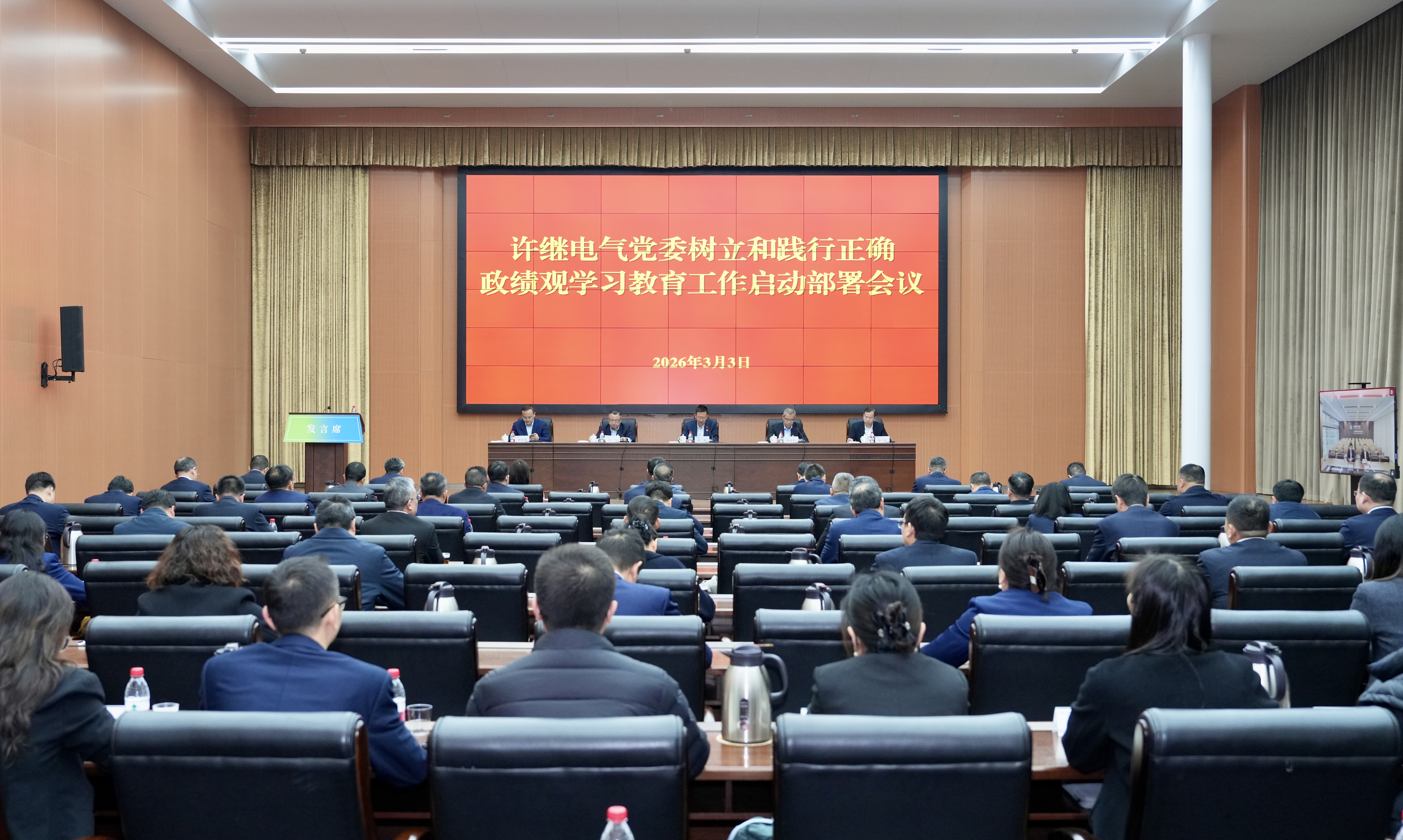 3月3日,许继电气党委召开扩大会议暨党建工作领导小组会议,认真学习贯彻习近平总书记关于树立和践行正确政绩观的重要论述,传达学习中央党的建设工作领导小组会议精神、中共中央办公厅印发《关于在全党开展树立和践行正确政绩观学习教育的通知》要求,以及中国电气装备党委会扩大会议暨党建工作领导小组会议精神,研究部署启动树立和践行正确政绩观学习教育工作。公司党委书记、董事长季侃主持会议并讲话,党委委员、总会计师陆飞传达上级相关会议、文件精神,党委副书记、董事、工会主席胡四全宣贯公司党委树立和践行正确政绩观学习教育工作方案。公司其他领导班子成员出席会议并作交流发言。